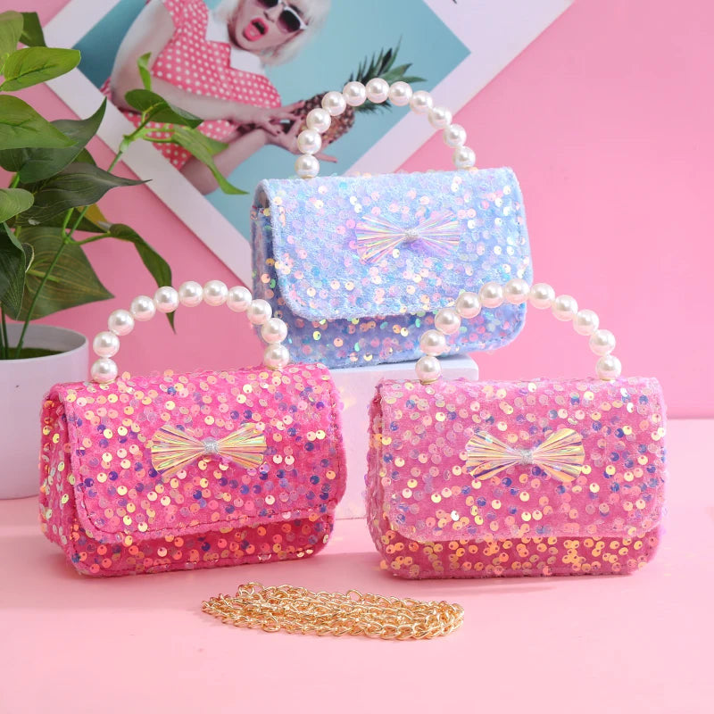 New Kids Sequins Crossbody Bags for Girls Coin Wallet Pouch Cute Child Baby Bowknot Purses and Handbags Gift