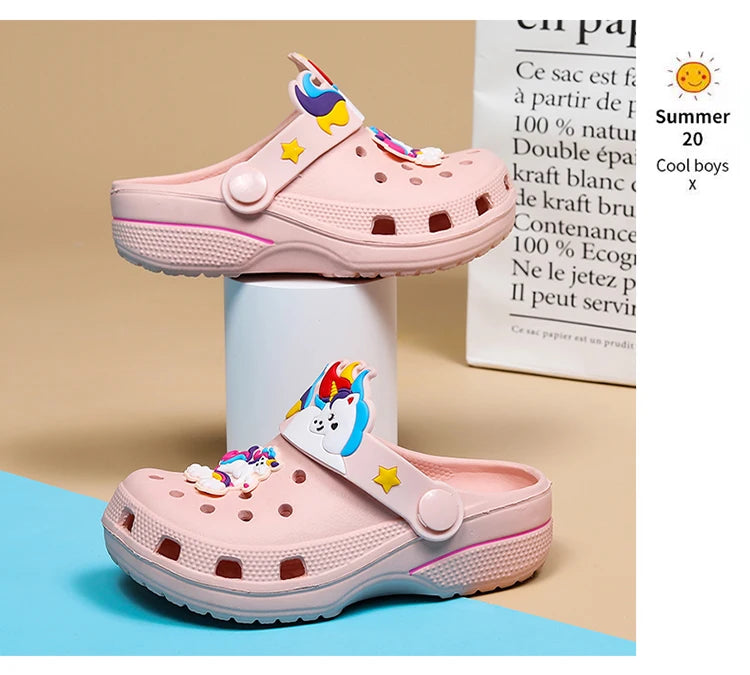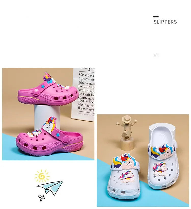 Kids Unicorn Sandals Boys Girls Mules Clogs Summer Garden Shoes Beach Slippers Kids Crocs Hole Shoes